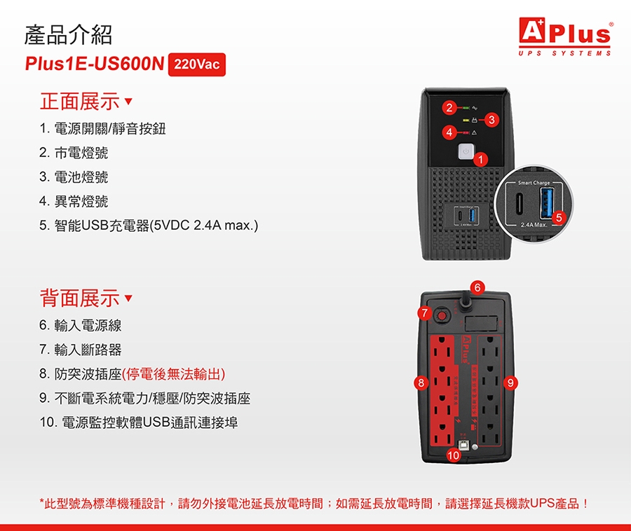1. 注意:此機種為220V電壓規格機種!