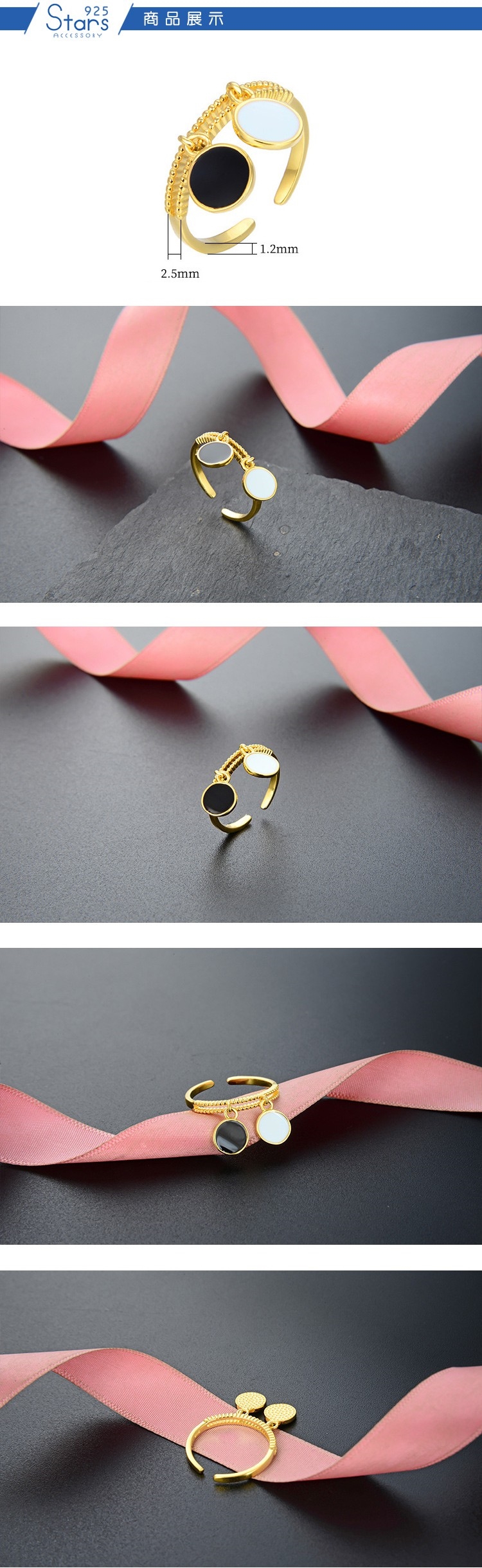 【925 STARS】純銀925極簡撞色滴釉圓片造型開口戒戒指 純銀戒指 造型戒指 開口戒情人節禮物