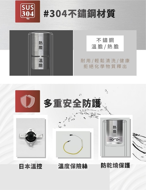 多重安全防護,日本溫控、溫度保險絲、防乾燒保護