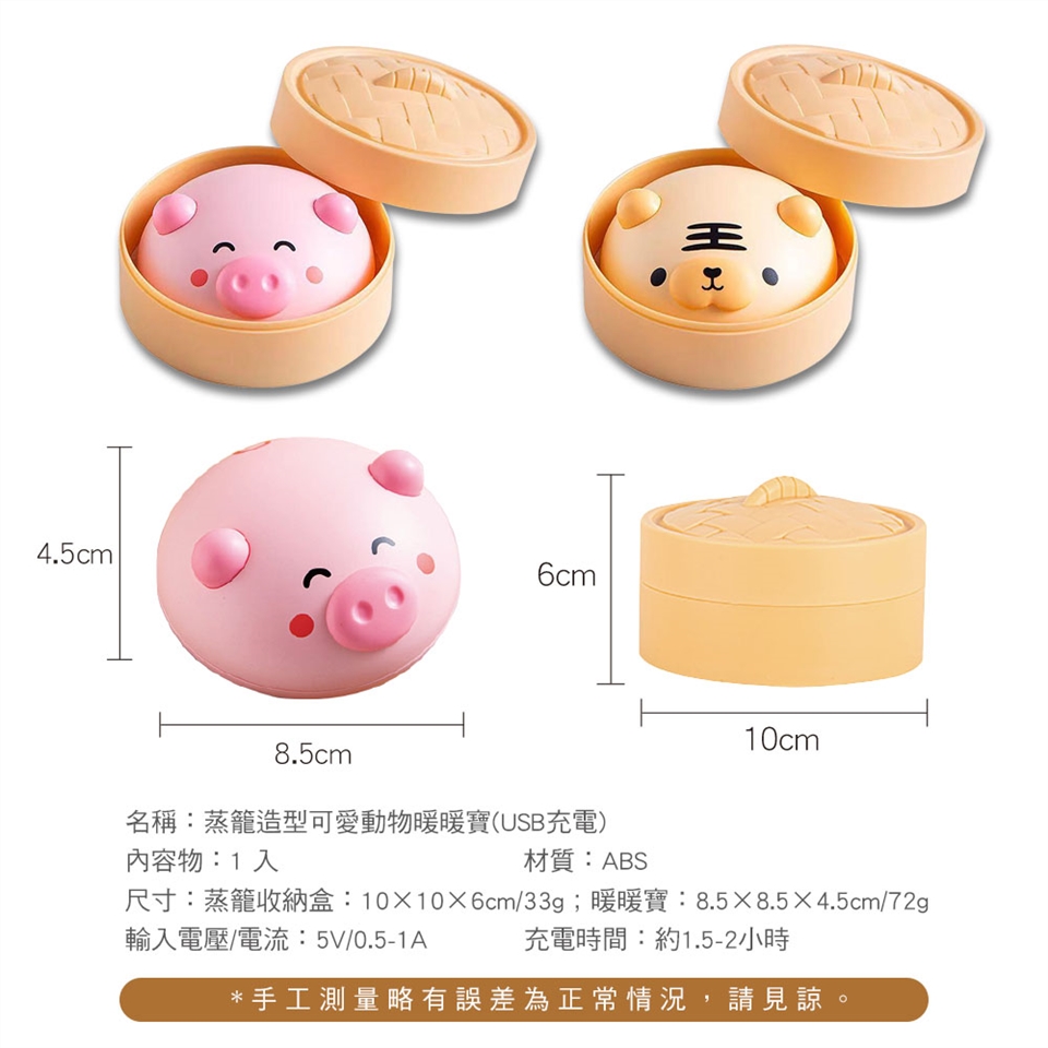 商品名稱:蒸籠造型可愛動物暖暖寶(USB充電)
