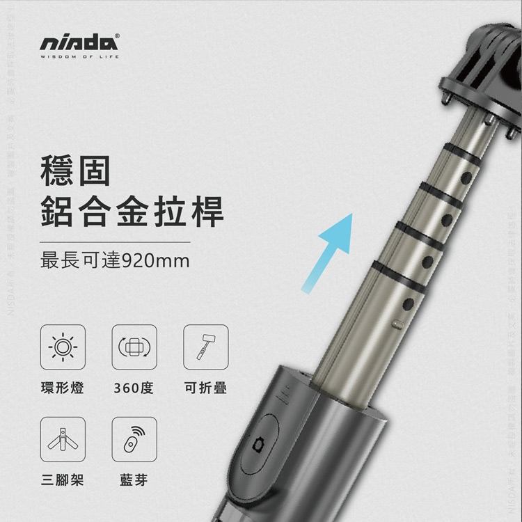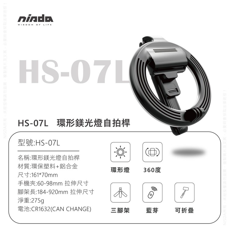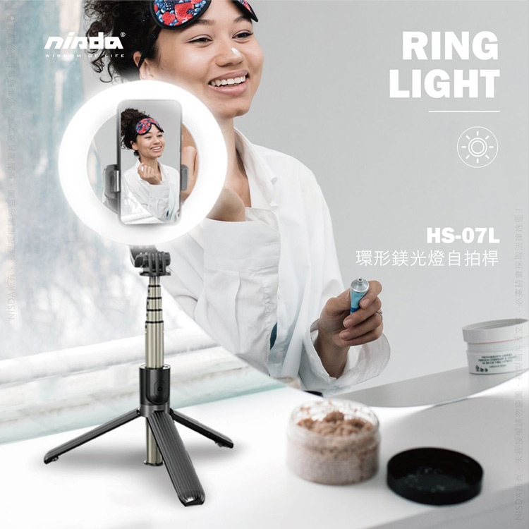 NISDA HS-07L 美顏直播 自拍桿LED環型5寸補光燈 藍牙自拍桿