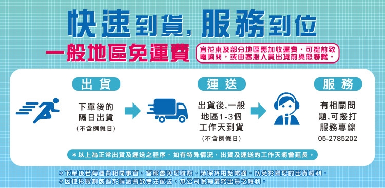 ※ 商品配達時,請當場檢查商品完整性,避免造成爭議。