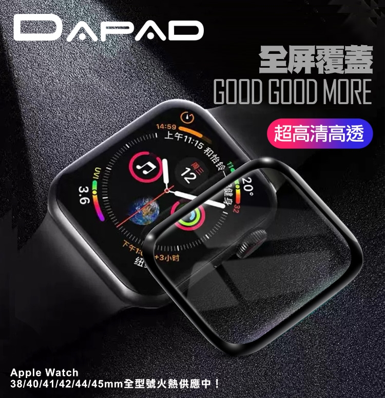 DAPAD固固膜 For Apple Watch 38mm 滿版螢幕保護貼-亮面