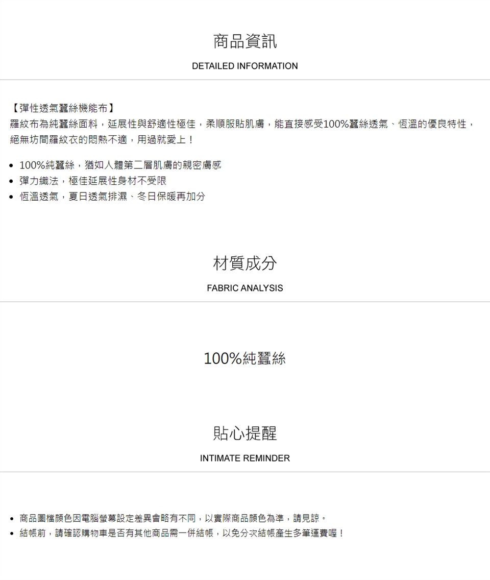 ► 請避免於太陽直射處曝曬,避免蠶絲纖維損壞。