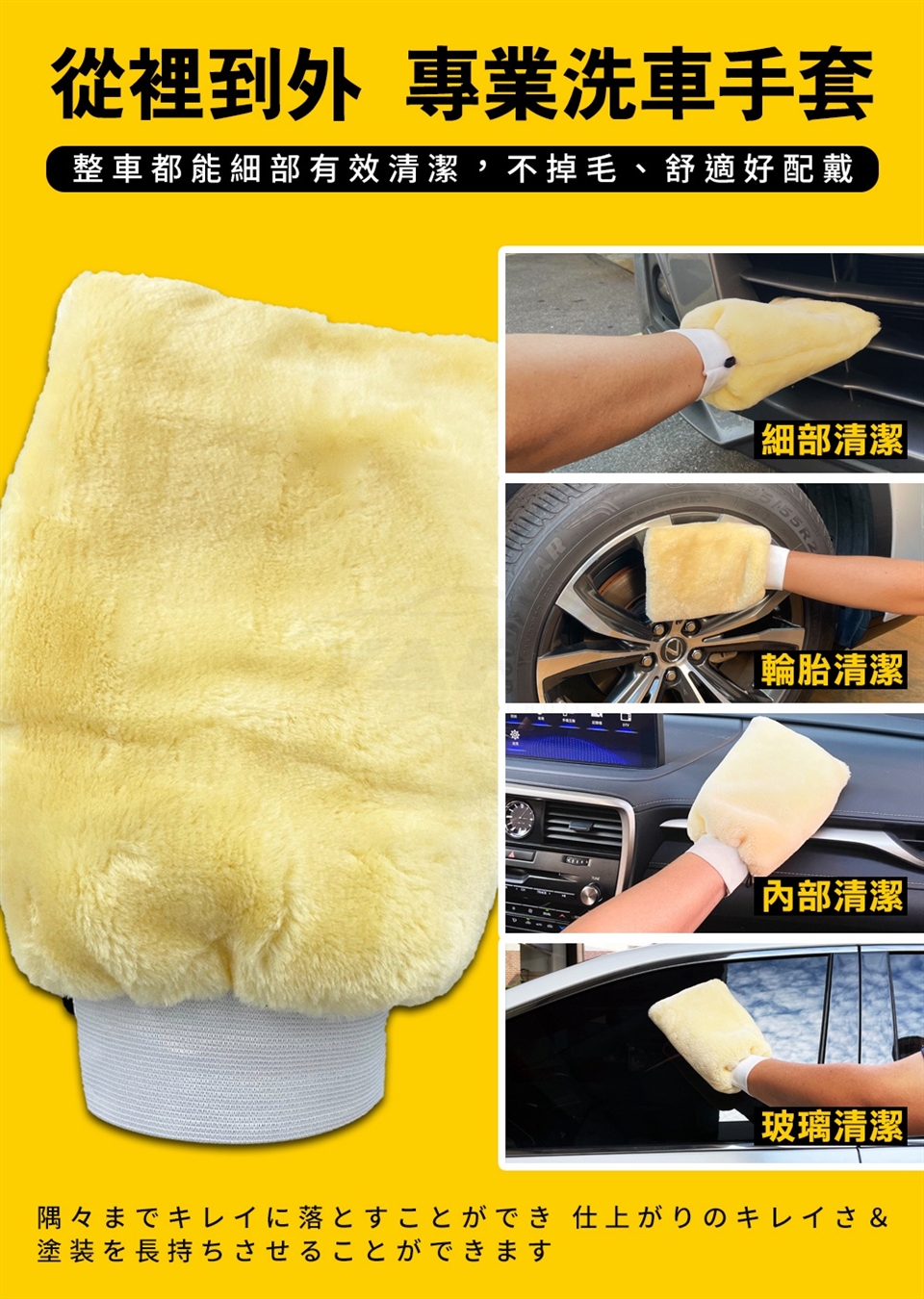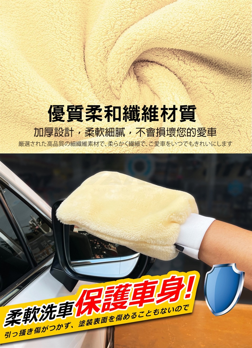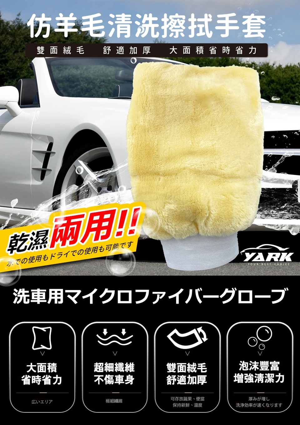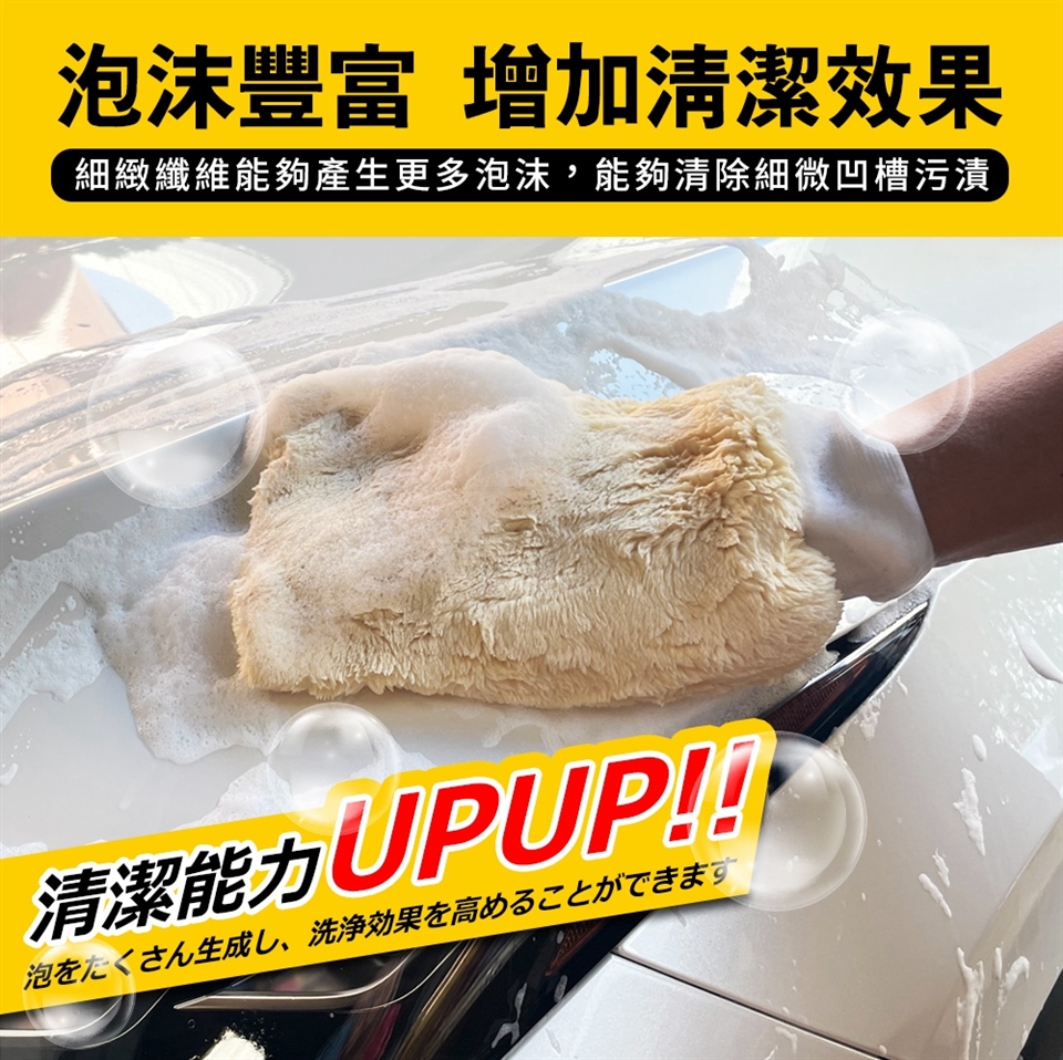 2 洗車打蠟皆可,高密度仿羊毛加厚設計,可打綿密泡沫。