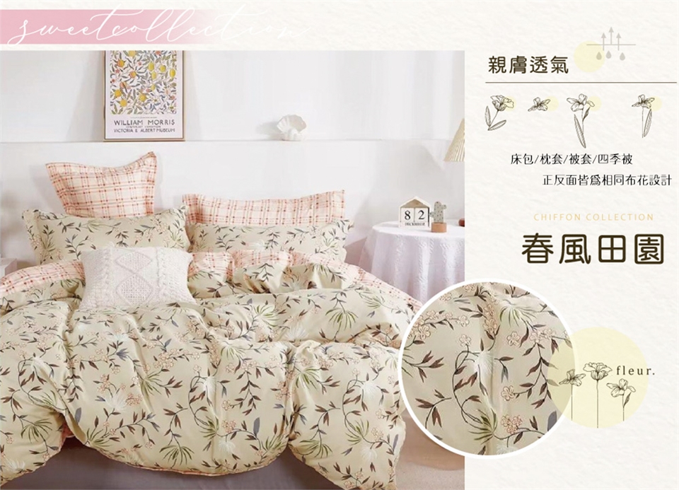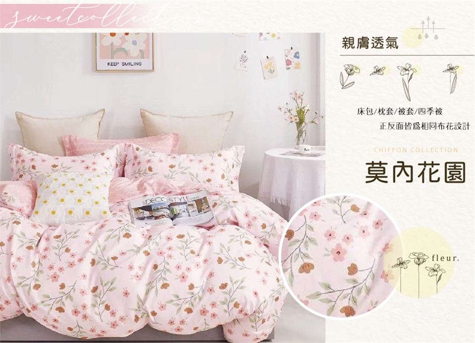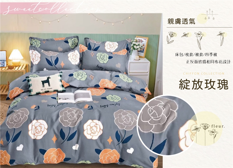 ◆ 床包/枕頭套/兩用被--均為A版花色製作(被套正面花色)