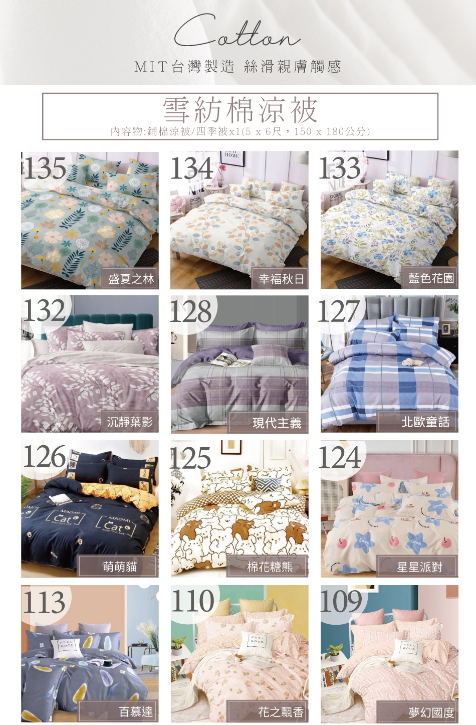 四季被-有鋪棉,但無拉鍊,無法加入被胎使用。