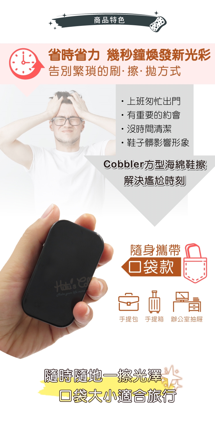 Cobbler方型海綿鞋擦功能: