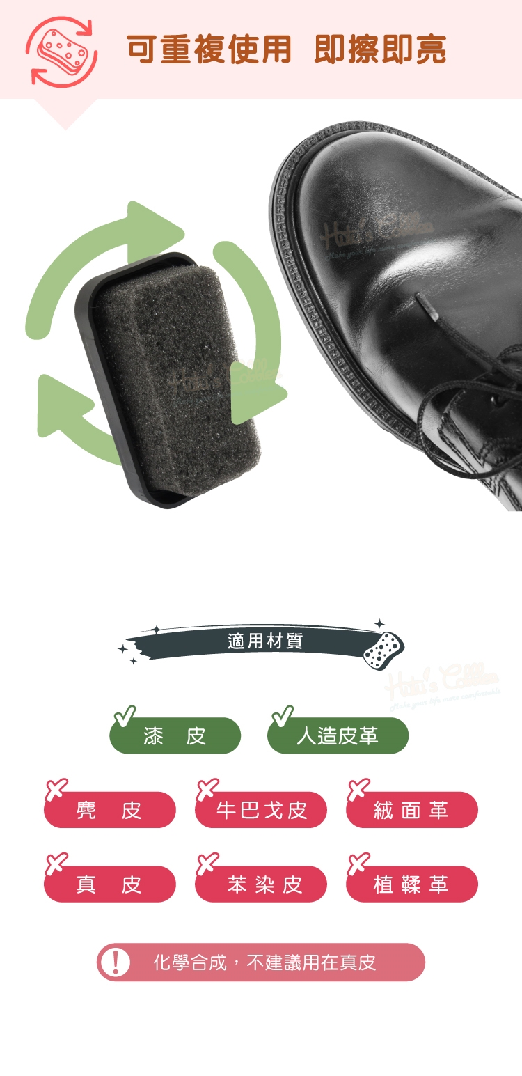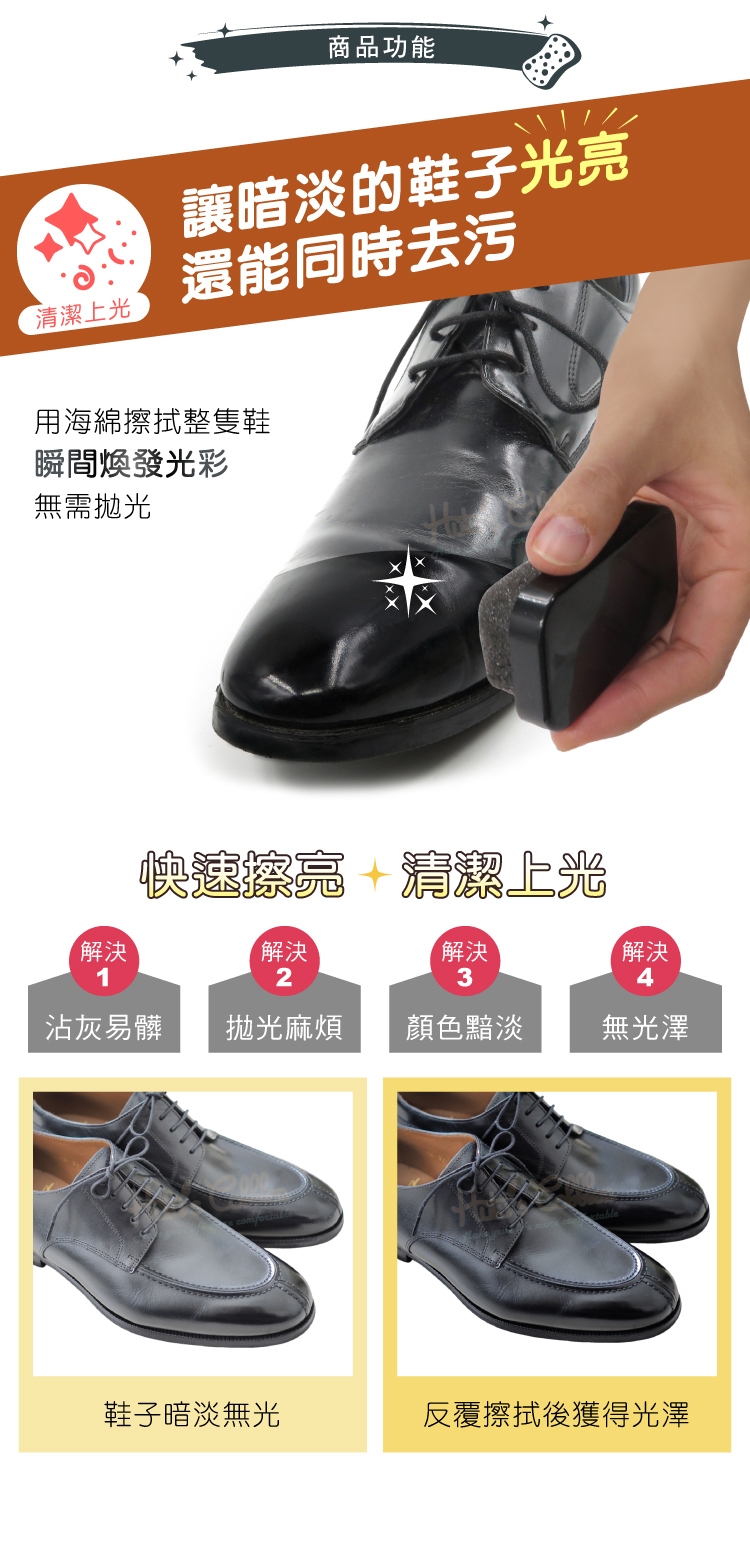 讓暗淡的鞋子光亮,還能同時去污,快速擦亮,清潔上光