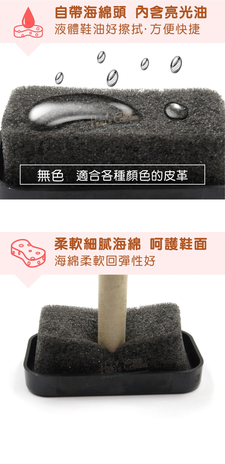 3.自帶海綿頭:內含亮光油,液體鞋油好擦拭,方便快捷