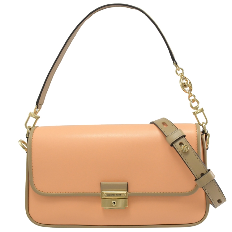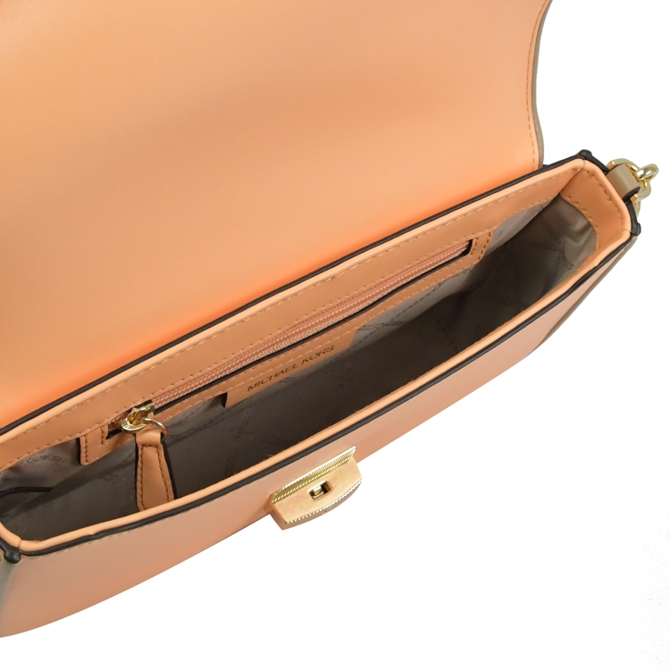 MICHAEL KORS 品牌(簡稱MK)成立於 1981 年是美國設計師同名的品牌;專櫃商品,此款專櫃熱銷兩用斜包系列,滑面皮革搭配金屬壓釦LOGO設計,壓釦翻蓋開口/內有1拉鍊袋+1貼袋,包外後1貼袋,內可放長夾、手機及鑰匙等等隨身小物,可斜背或側背、肩背及手提,出遊無負擔的小包,精緻高雅,釋放都會簡約風格,兼具典雅時尚氣質。