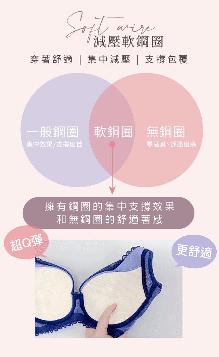 ★服貼身型最舒適軟Q的軟鋼圈,支撐性大增