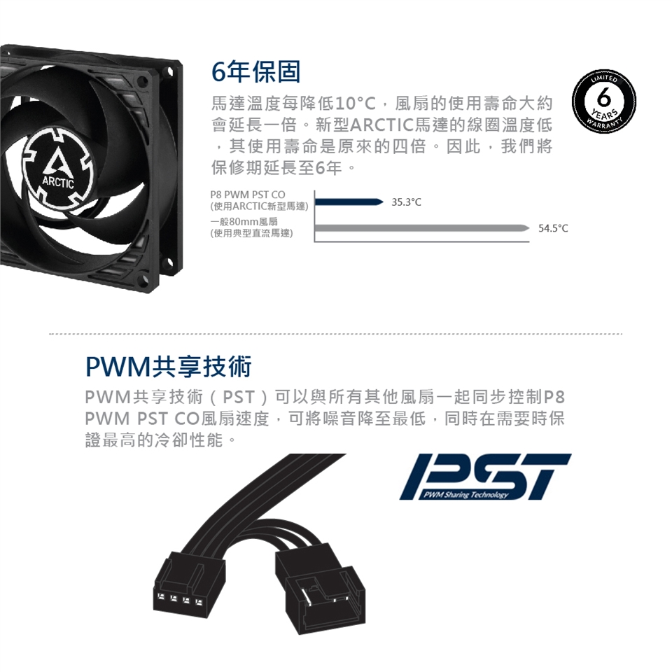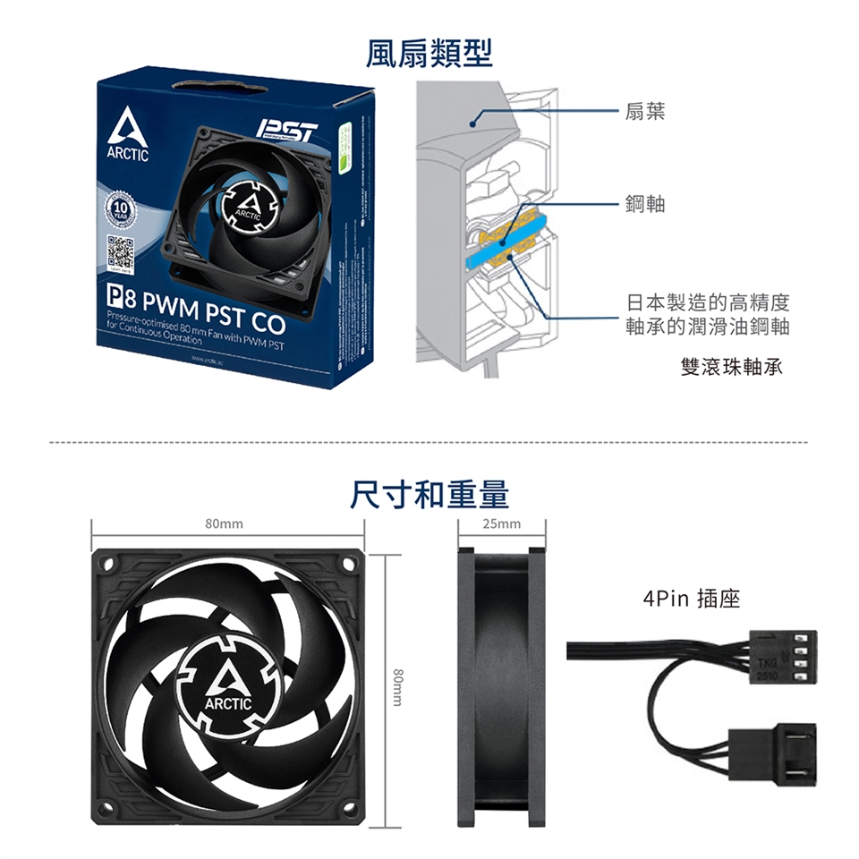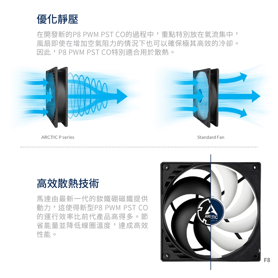 【ARCTIC】P8 PWM PST 8公分日製雙滾珠共享旋風扇 6年保 樂維科技原廠公司貨