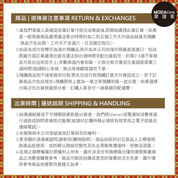 ※我們工作人員皆辛苦努力地為您的訂單服務,為避免因退換貨浪費來回時間與造成物流費用等資源損失與浪費,訂購前請務必謹慎思考您需要的規格尺寸,請務必確認後方才下單