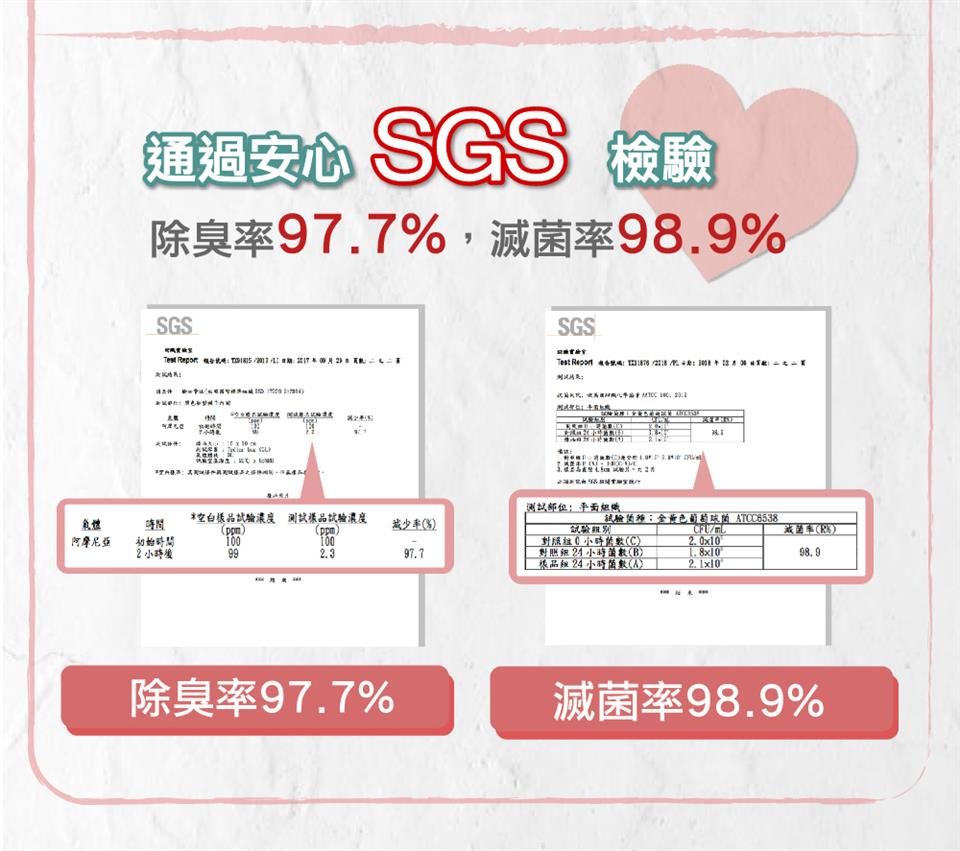 通過SGS 抗菌98.9 除臭97.7
