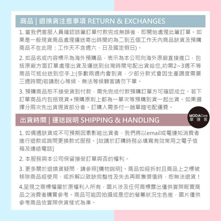 ※我們工作人員皆辛苦努力地為您的訂單服務,為避免因退換貨浪費來回時間與造成物流費用等資源損失與浪費,訂購前請務必謹慎思考您需要的規格尺寸,請務必確認後方才下單