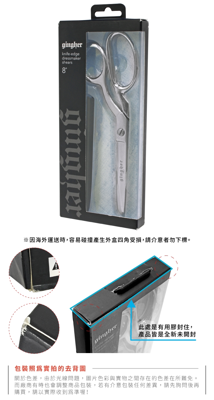 ●【品名】美國Gingher超鋒利洋裁剪縫紉剪刀220520-1101(全合金鋼;長約20cm/刃9公分;義大利製)拼布料剪裁縫剪布