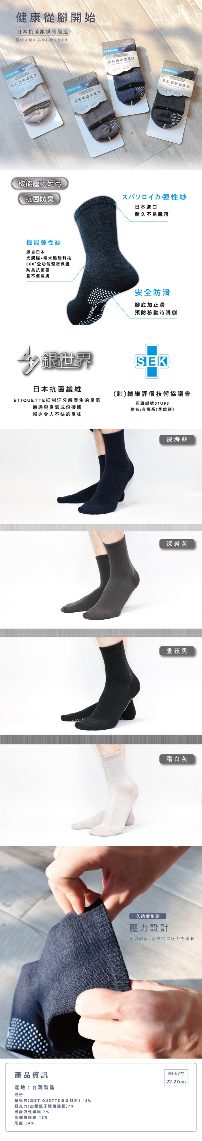 日本進口機能彈性紗製作,光醋媒+奈米醋酸科技,360度全方位緊密保護,防臭抑菌且不傷皮膚,耐久穿不易脫落,腳底止滑設計,舒適又安全!