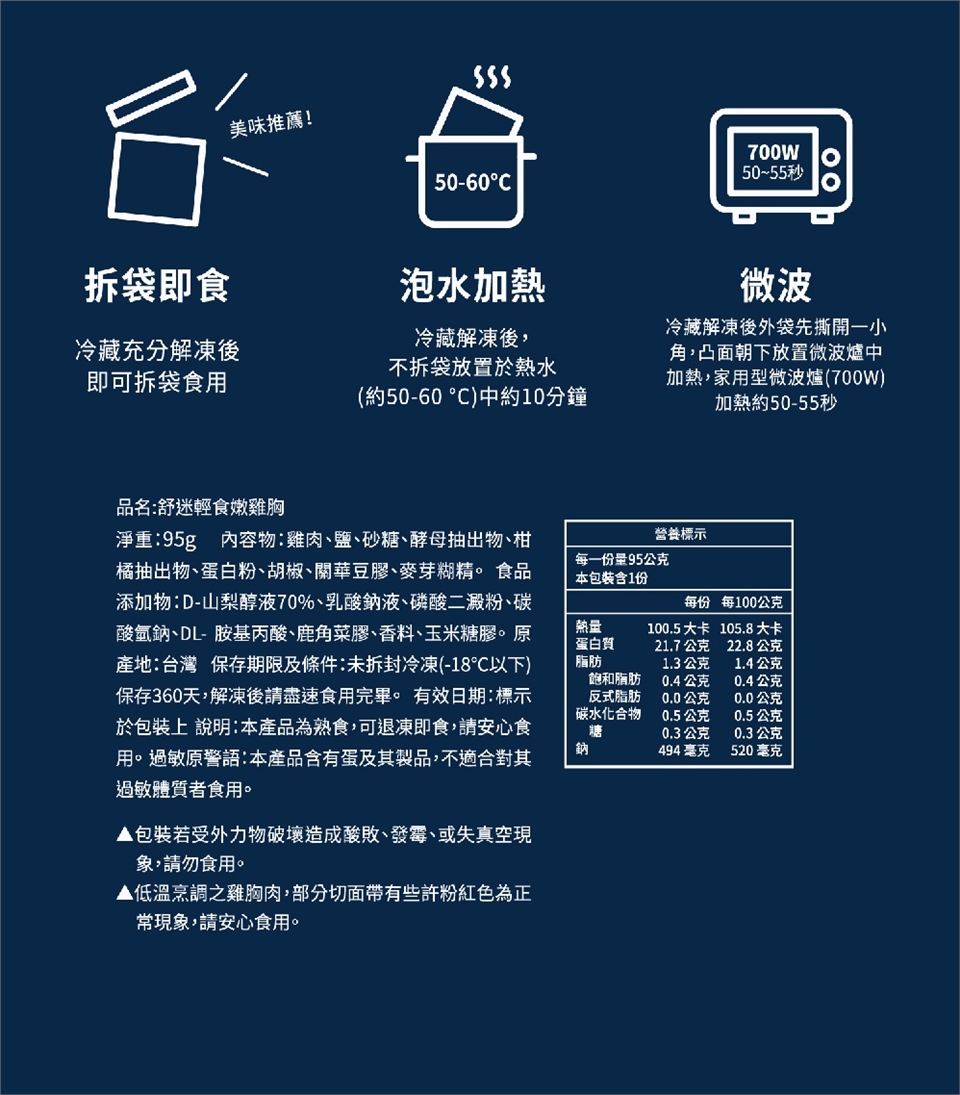 ※贈品舒迷雞胸肉如遇缺貨,改出舒肥雞胸肉(油蔥/椒麻口味)90g/包取代、口味隨機出貨