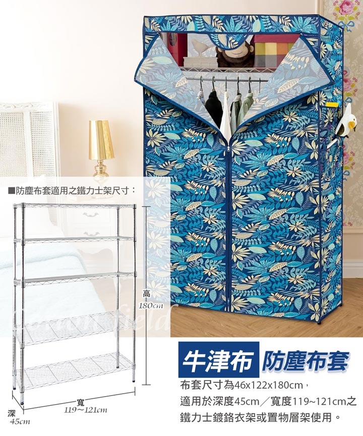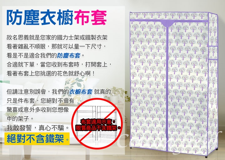 棉花田【里約】鐵力士鍍鉻架防塵衣櫥布套-不含鐵力士架(122x46x180cm)