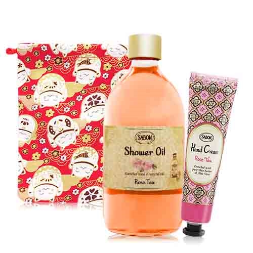 中文品名:SABON 玫瑰茶語新年限定香氛組[沐浴油+護手霜+束口袋]
