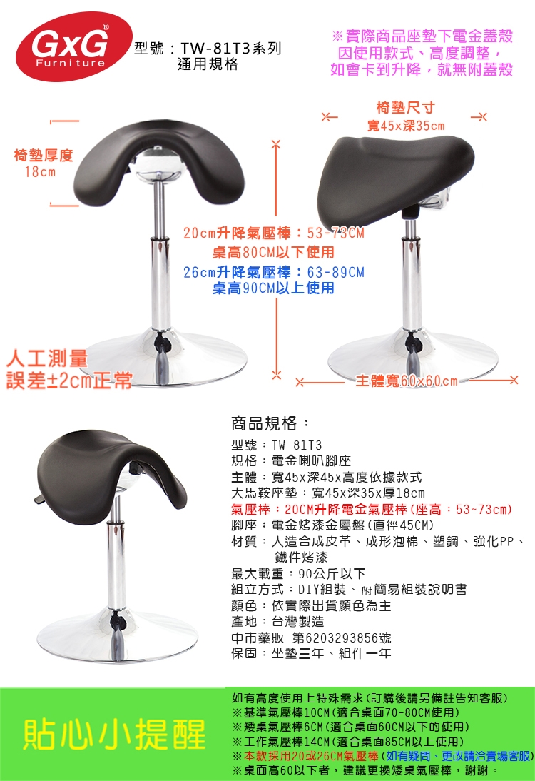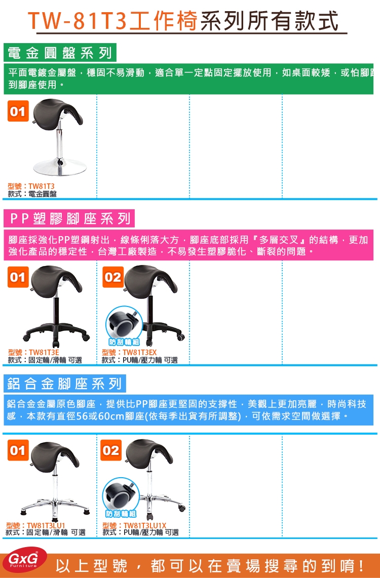 ※本款TW-81T3 馬鞍工作椅,提供多款式可選,可以依據需求購買