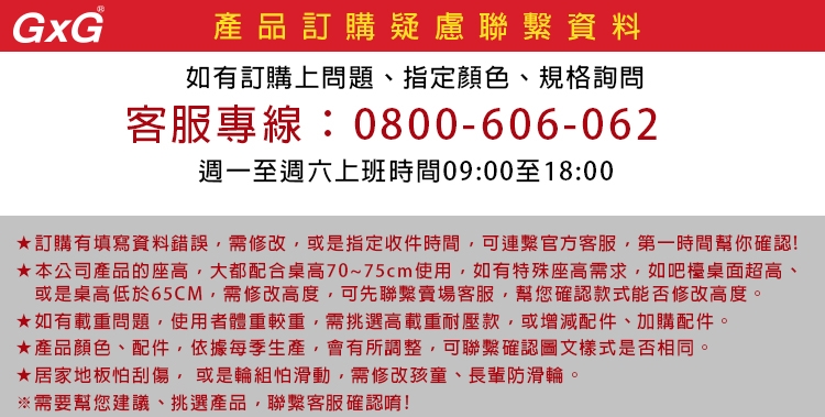 訂購前可多詢問賣場客服,避免購買後,椅子座面過高或過矮等狀況!