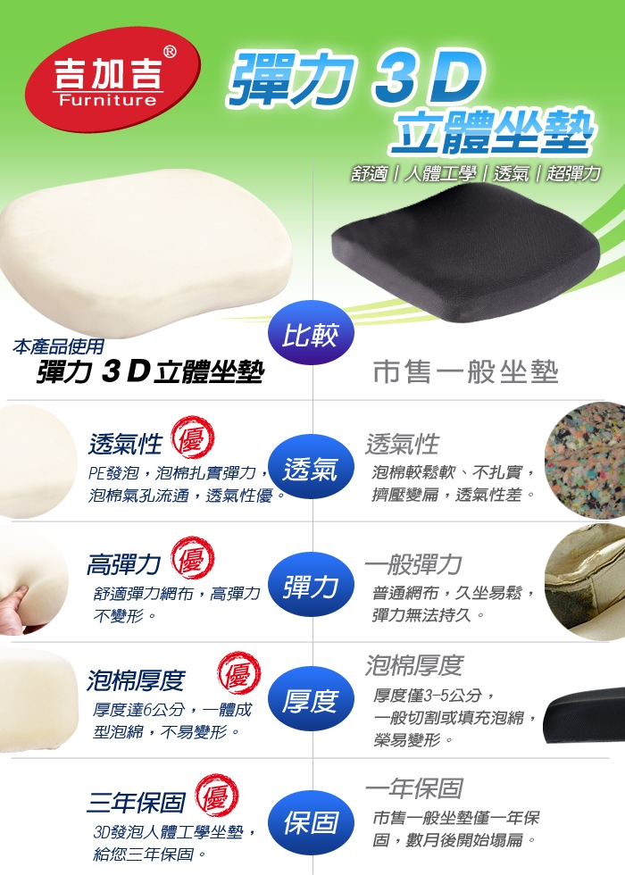 座墊採用一體成形發泡泡棉,舒適度及耐用度大大提升!
