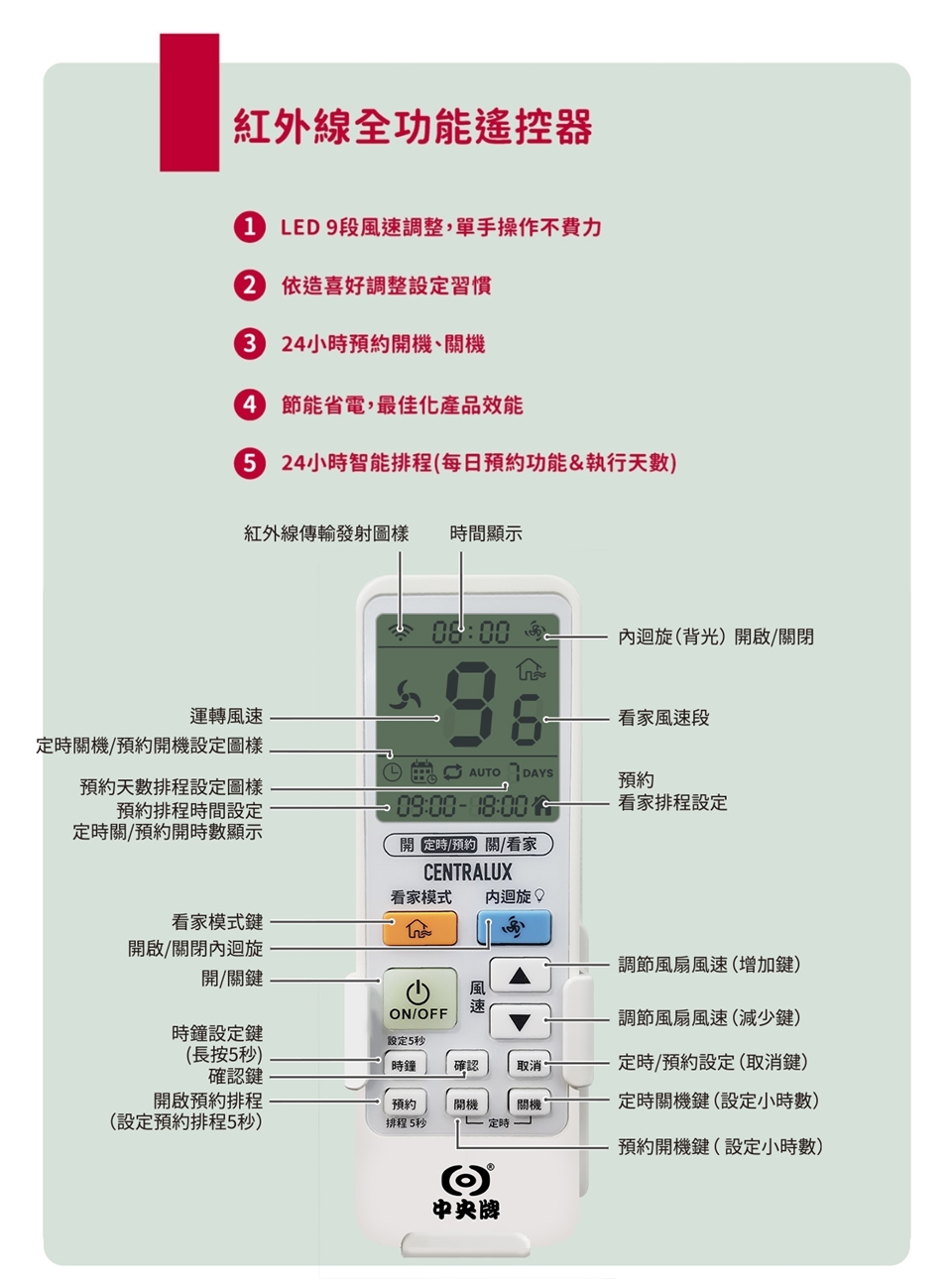 遙控器使用碳鋅電池。