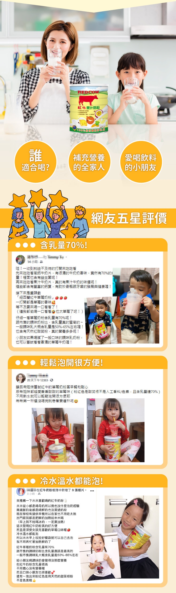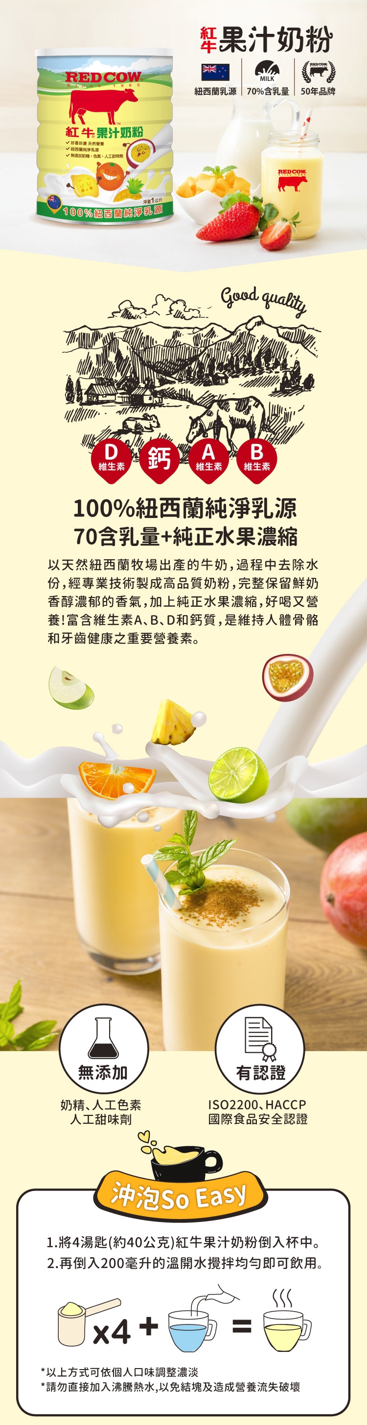 商品詳細介紹 體驗說明 不可體驗 使用方法說明 先將4湯匙(約40公克)紅牛奶粉,加入200毫升的溫開水,攪拌均勻至奶粉完全溶解即可飲用。請使用55C以下飲用溫水沖調,避免營養素流失與破壞。 注意事項 請放置陰涼處保存