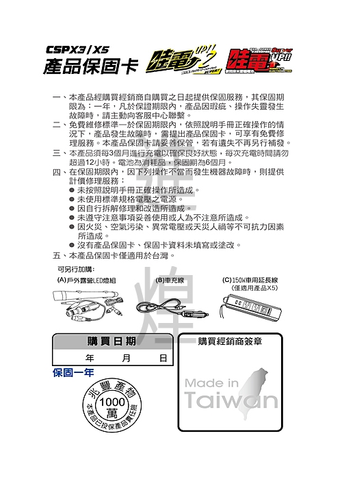 保固期內,若因人為操作或其他因素造成商品故障損壞,來回運費需消費者自行處理,謝謝!