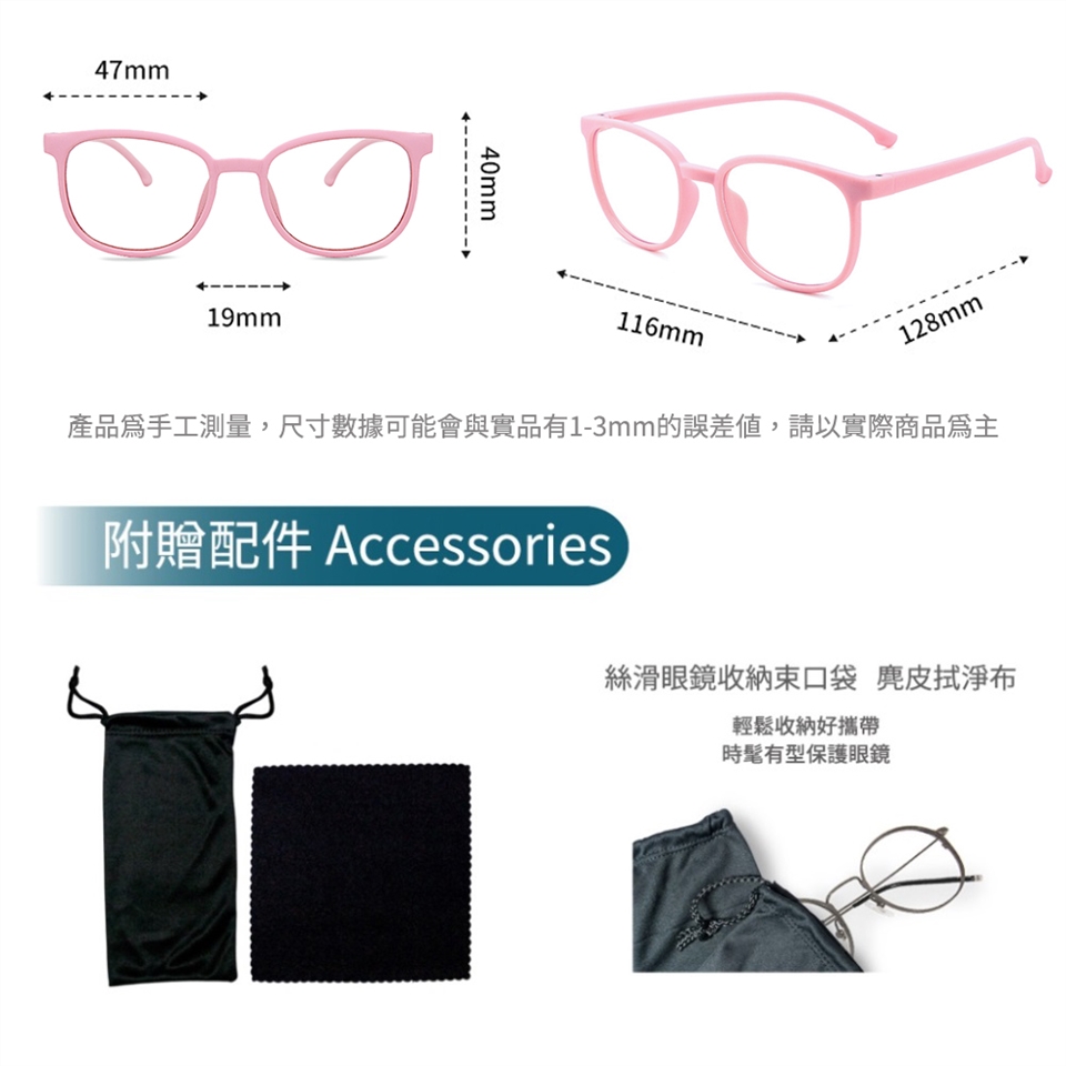 專為兒童設計的矽膠輕量材質濾藍光眼鏡,為可彎曲彈性鏡框,不用擔心兒童在玩樂時因為碰撞而受傷。