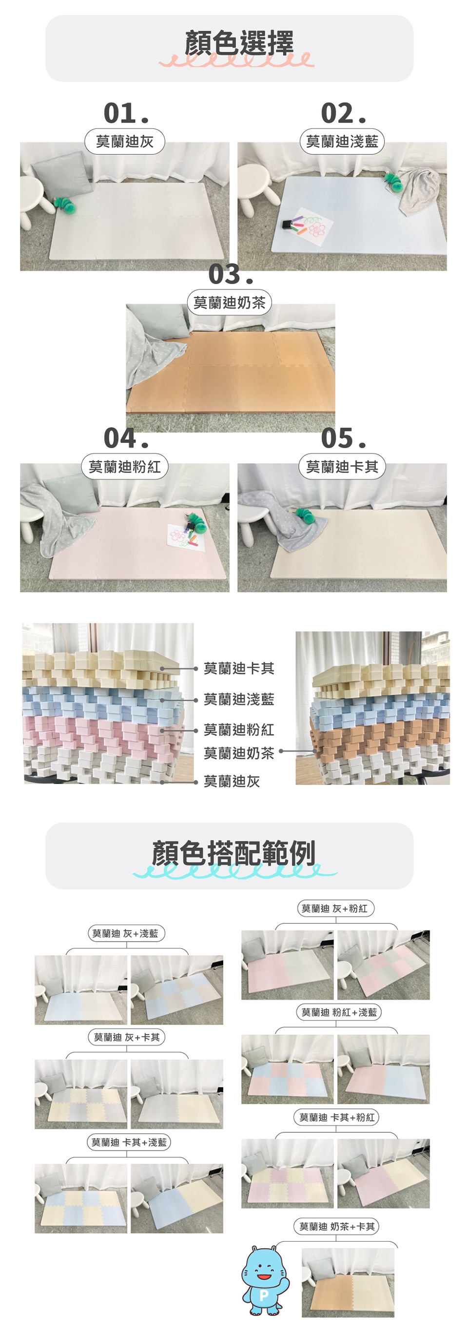 【新生活家】2cm厚防護巧拼地墊-莫蘭迪五色任選32x32x2cm (32片)