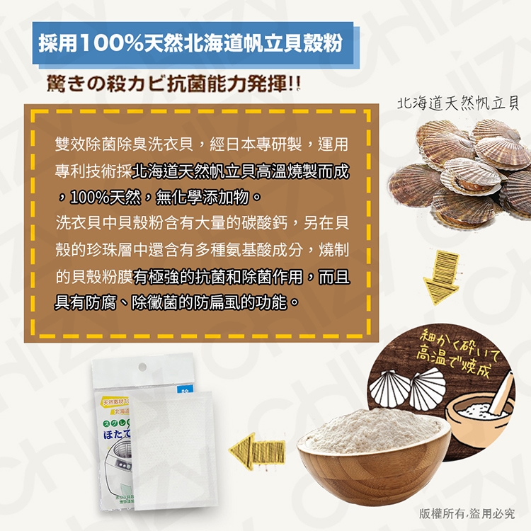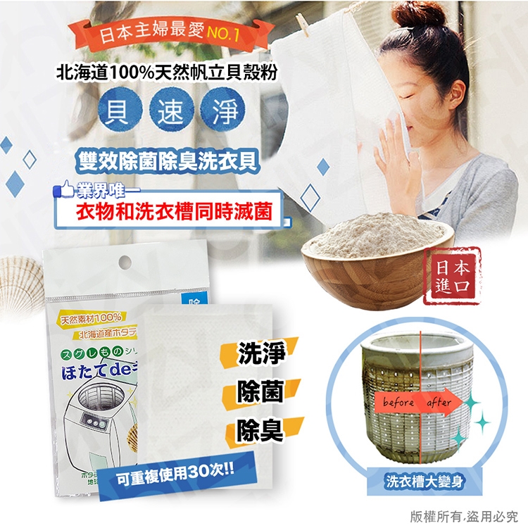 來試試日本北海道天然貝殼粉的洗衣貝,業界首創! 一次把衣服與洗衣槽細菌殺光光!