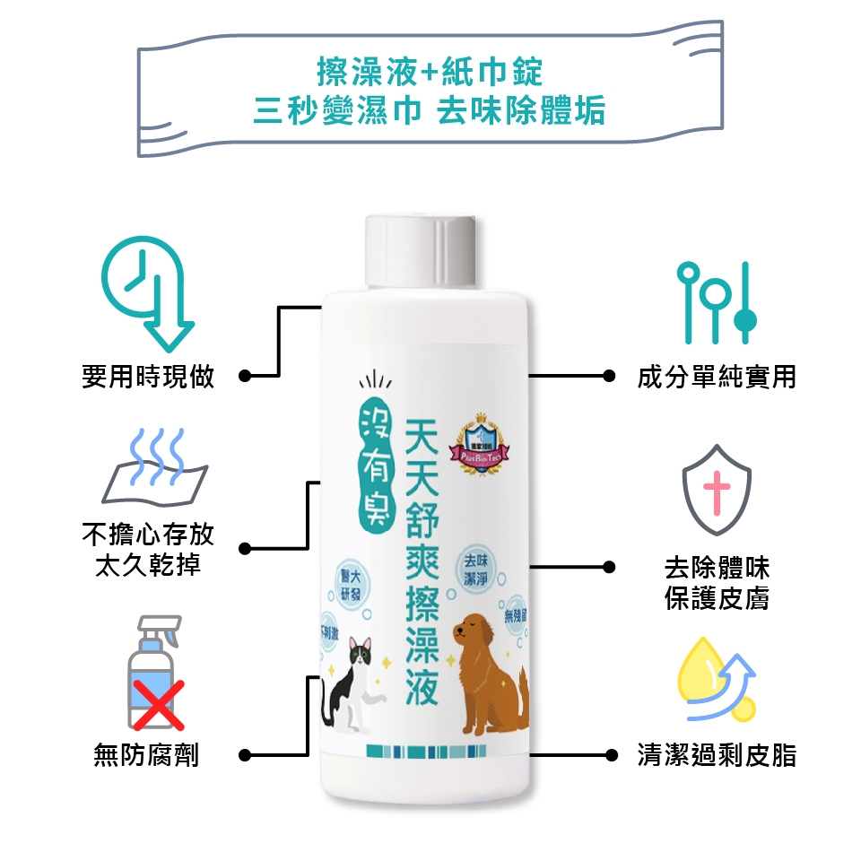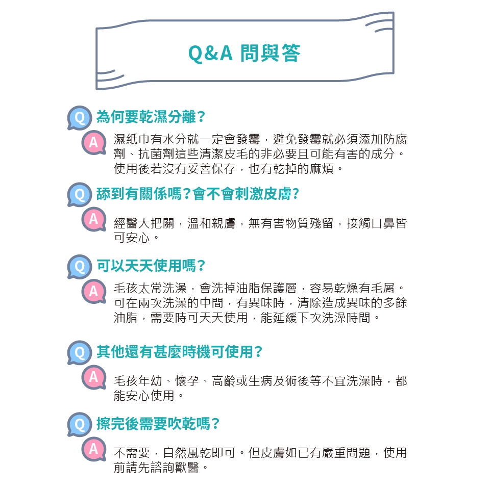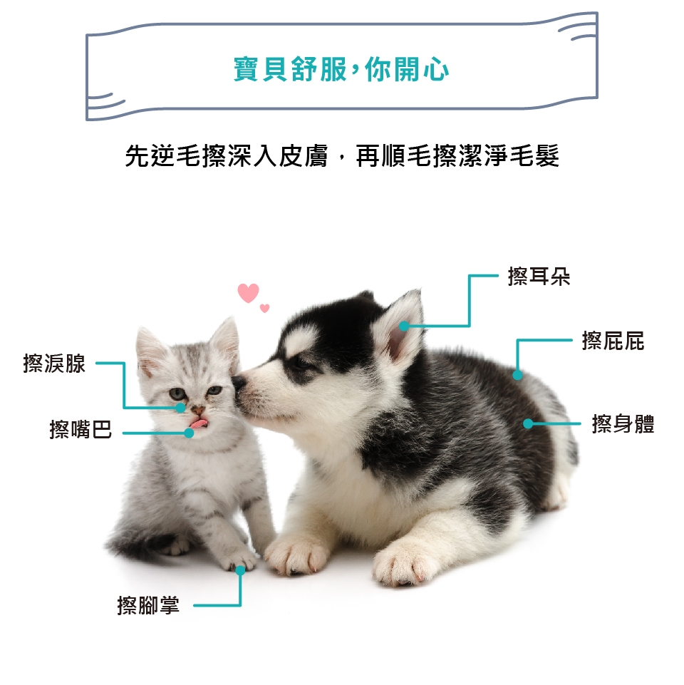產品用途:擦一擦讓寵物天天都可如剛洗完澡般舒爽潔淨。