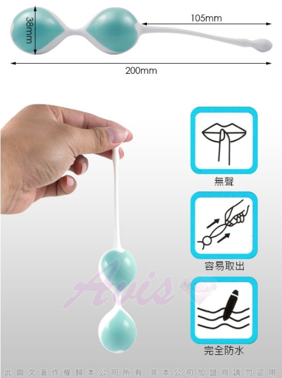 色彩繽紛的外在和光滑的表面是視覺和触覺上的享受。專利特殊設計讓它即使在跳動的狀態也是非常安靜。這些聰明的特色,讓聰明球球成為世界上最受歡迎的女性玩具,也是最讓男人迷惘、讓女人心跳加速的女性娛樂。 (不需使用電池)