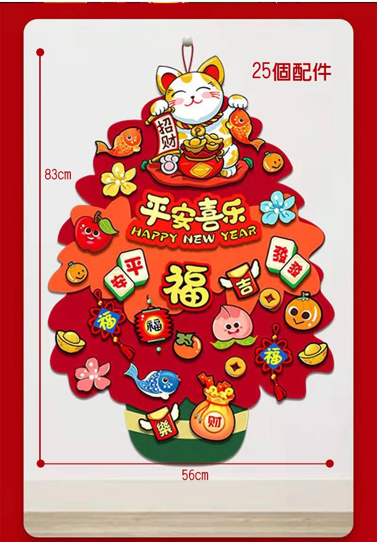 3.需要用泡棉雙面貼貼上招財配飾,再黏在招財樹上