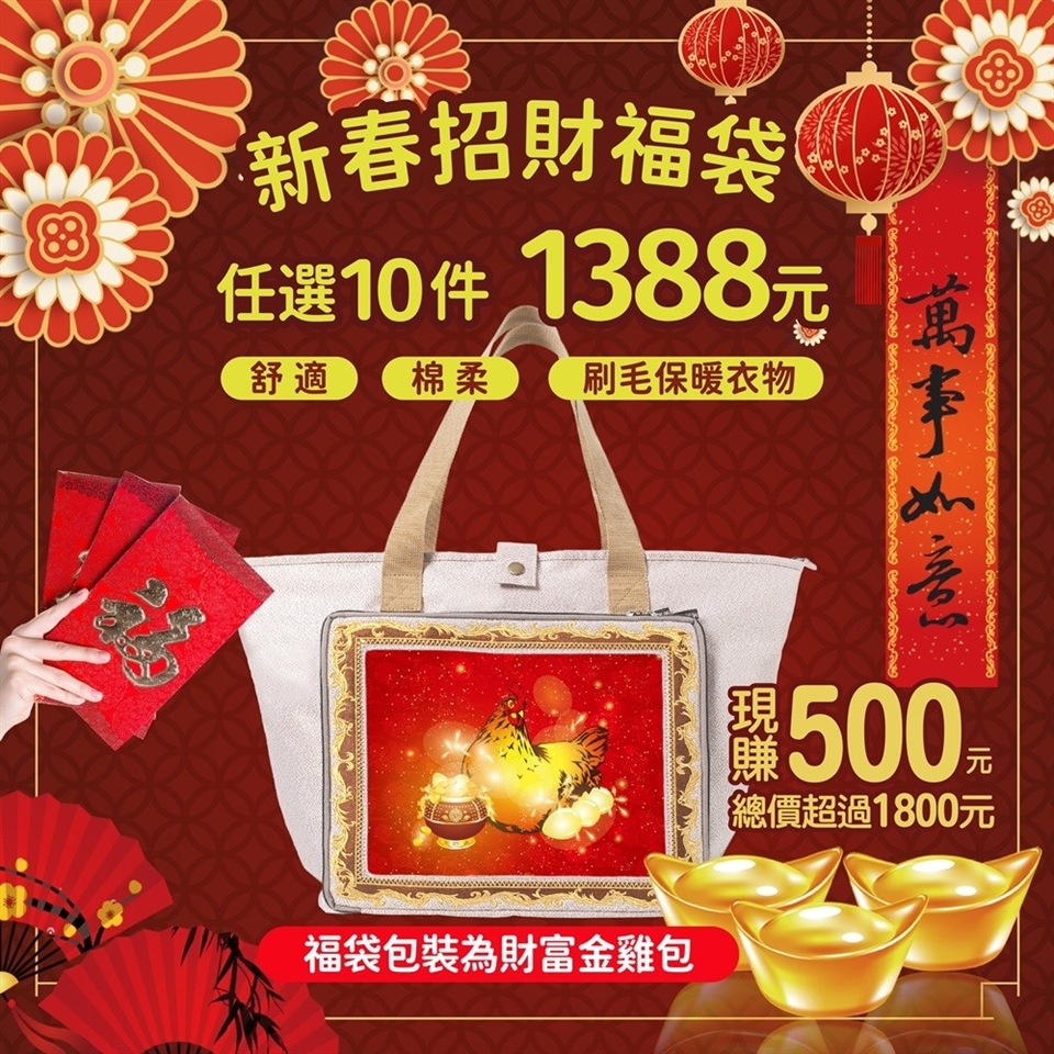 福袋內容物不提供品項、款式或顏色挑選。