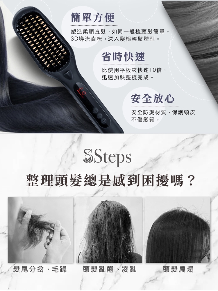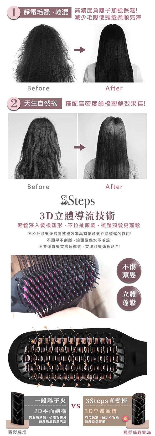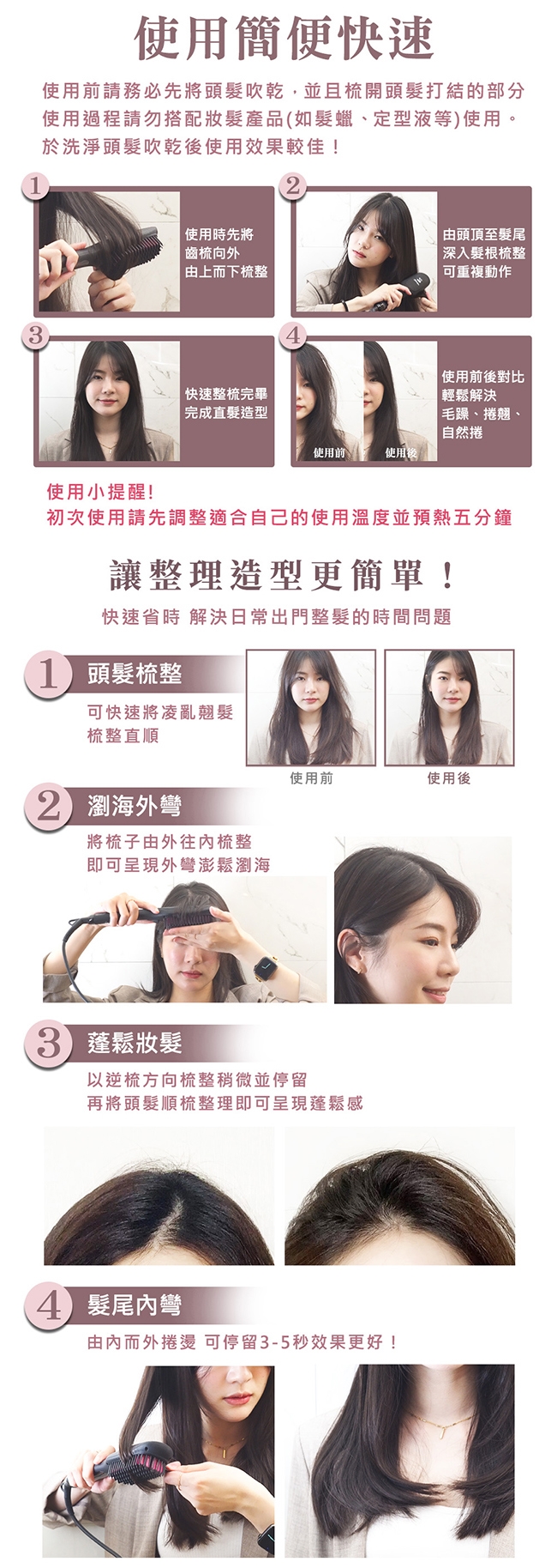 1.使用前請務必先將頭髮吹乾, 並且梳開頭髮打結的部分