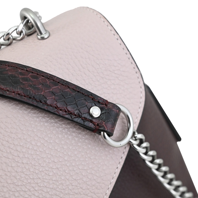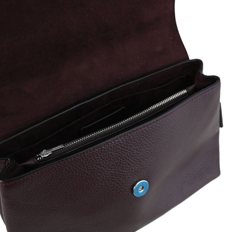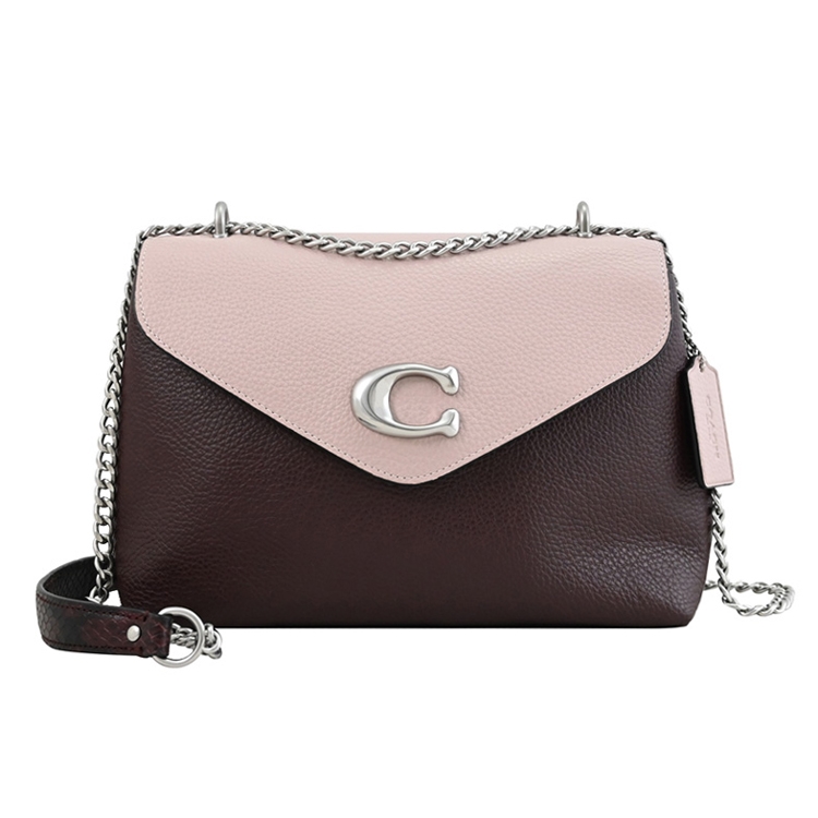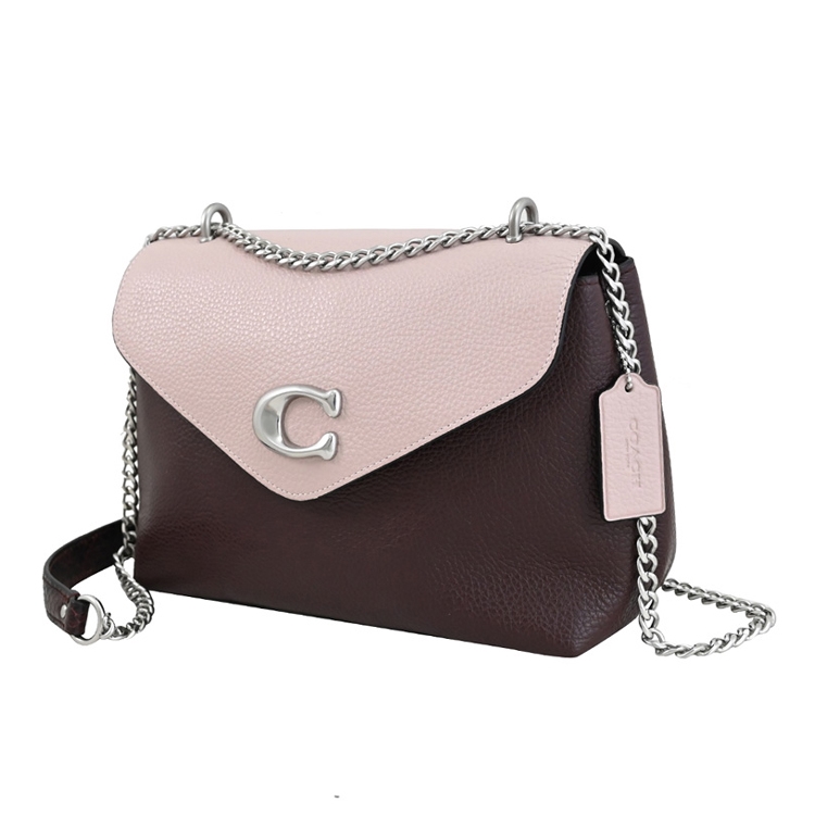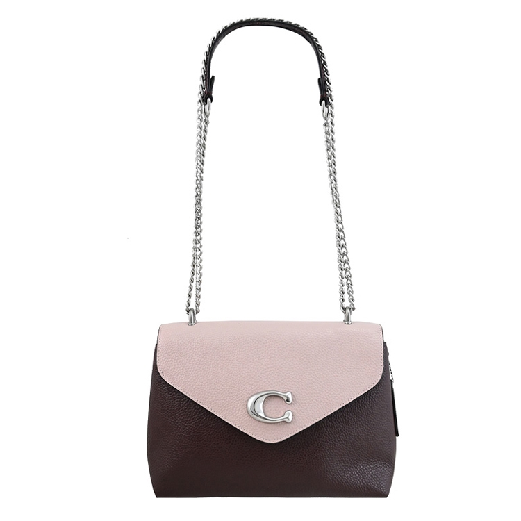 COACH 專櫃商品,熱銷時尚新款,經典金屬C LOGO斜背鍊包系列,採用撞色荔枝皮革材質,翻蓋磁扣式開口(內襯絨布)/中有1拉鍊袋革兩層包+內1貼袋,外1貼袋等供收納,附1皮革LOGO吊飾,內可放長夾、手機、鑰匙等隨身物品,可斜背或側背或手拿,輕鬆出門小包,無論外出逛街或出遊皆實用。