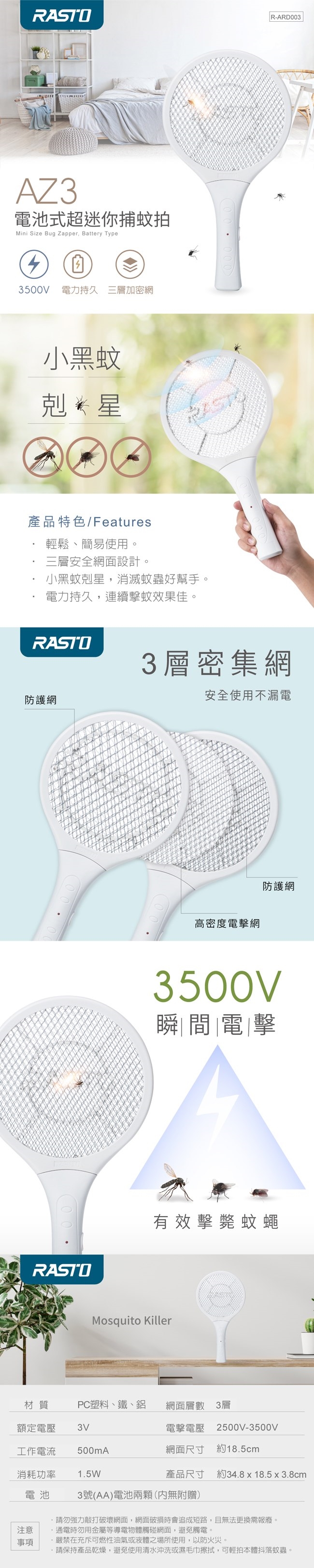 RASTO AZ3 電池式超迷你捕蚊拍