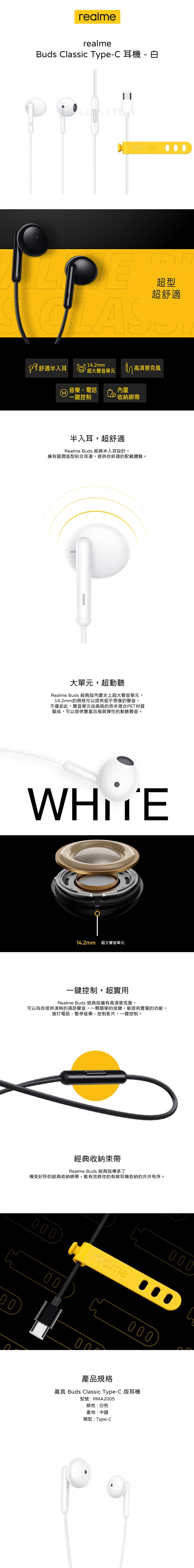 品名:真我Buds Classic 半入耳式 Type C線控耳機