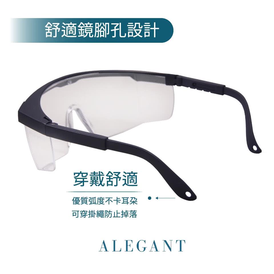 高透光一體成形鏡片,視野超清晰,杜絕粉塵入侵,鏡架卡鎖調節設計,輕鬆調節鏡腳長度,造型簡單貼合臉型。