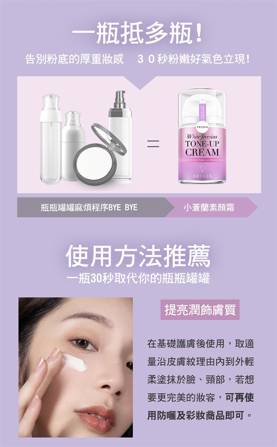 1. 取適量均勻塗抹於全臉肌膚直至吸收即可