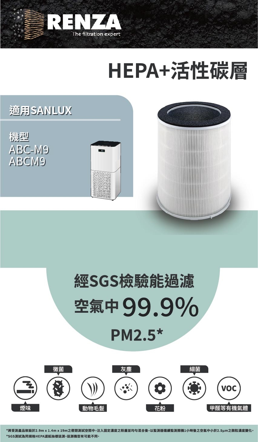 HEPA濾網有效過濾塵霾、灰塵、動物毛髮、PM2.5等空氣中微粒物