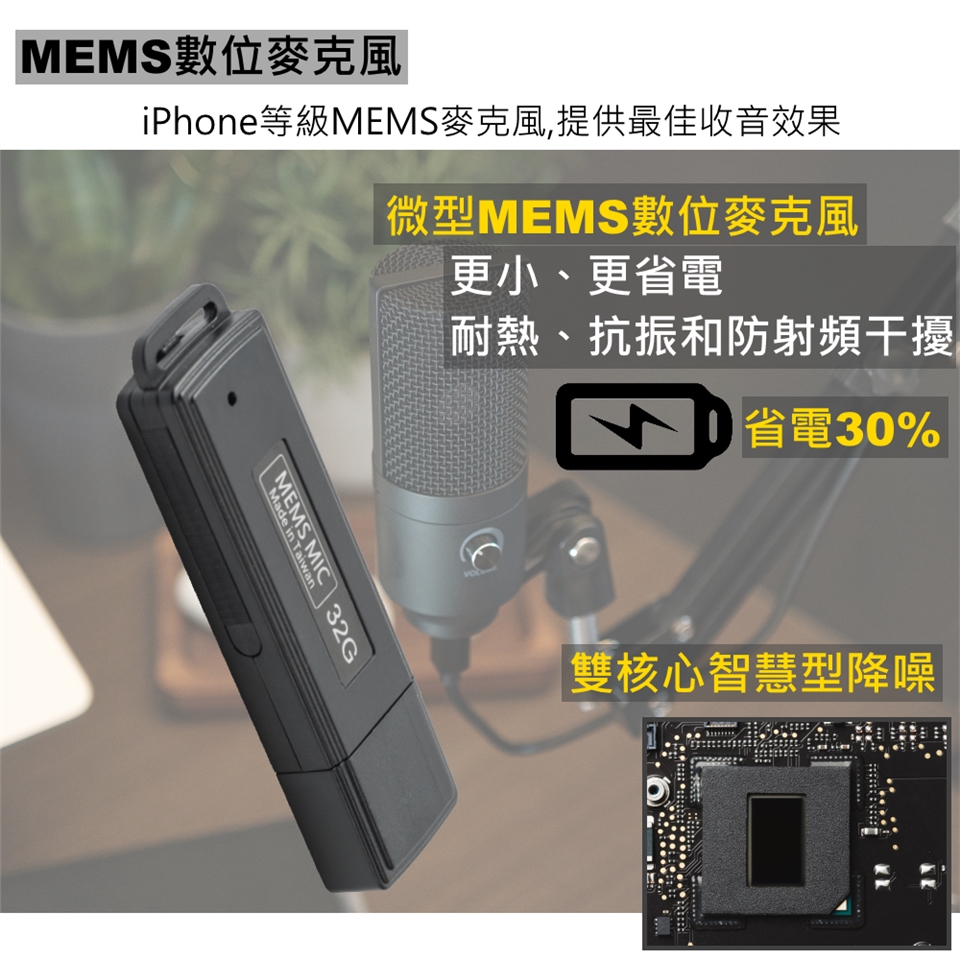 ◆內建數位MEMS麥克風,可抗震、防雜訊、防射頻干擾。