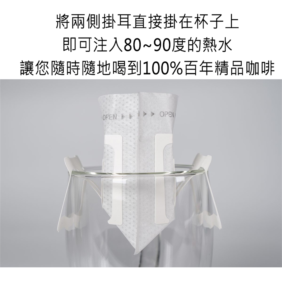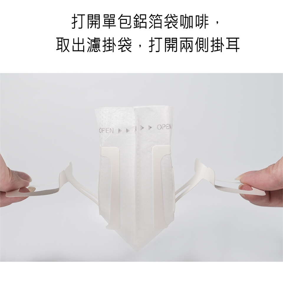 直接將本濾掛包掛在杯子上,以水溫80~92度之熱水沖泡即可飲用,可依個人喜好濃度調整水量多寡。