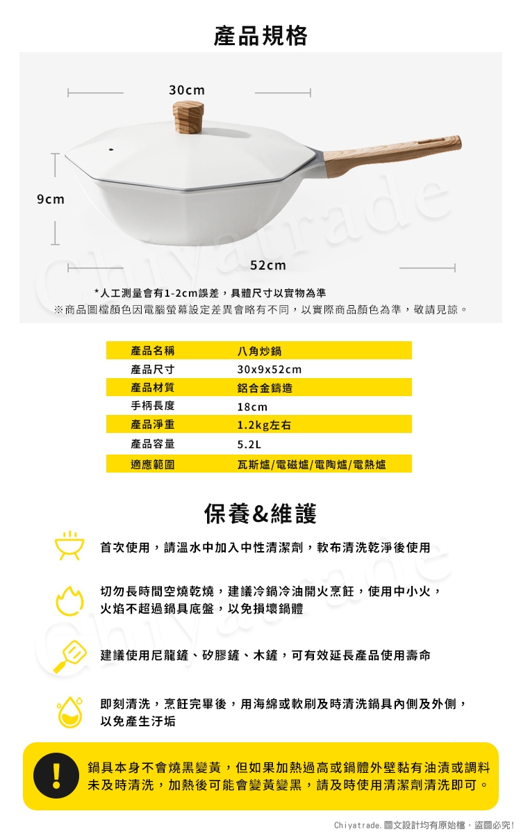 ※使用後及時清洗鍋具,並將鍋具擦乾,保持鍋具清潔。切勿使用鋼絲球,用清潔布,海綿刷即可!