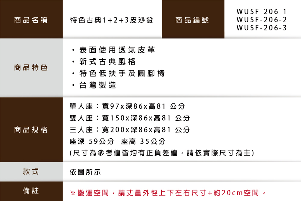 ※搬運空間,請丈量外徑上下左右尺寸+約20cm空間