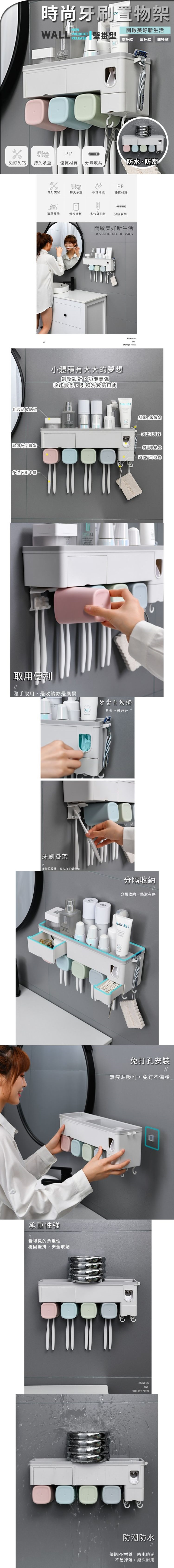 升級款的 多功能牙刷杯收納置物架,創新設計,功能更多樣化,無痕貼設計,輕輕一貼,不破壞牆面,承重力好,無痕美觀,按壓式擠牙膏氣,乾淨衛生,刷牙更輕鬆,多格收納設計,讓瓶瓶罐罐都歸位,分類收納,整齊不亂,瀝水設計,不積水,更衛生,使用牙刷跟漱口杯方便簡單唷
